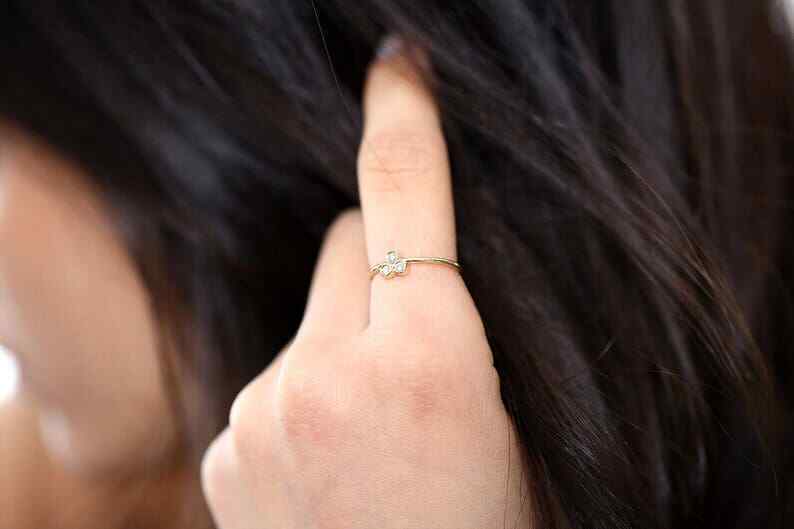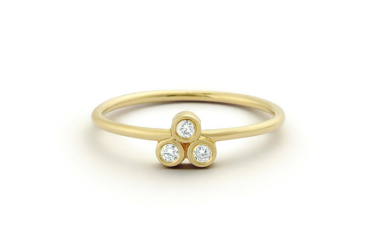 0.5ct Engagement Ring Round Cut Diamond Minimalist Trilogy 14k Yellow Gold Finish