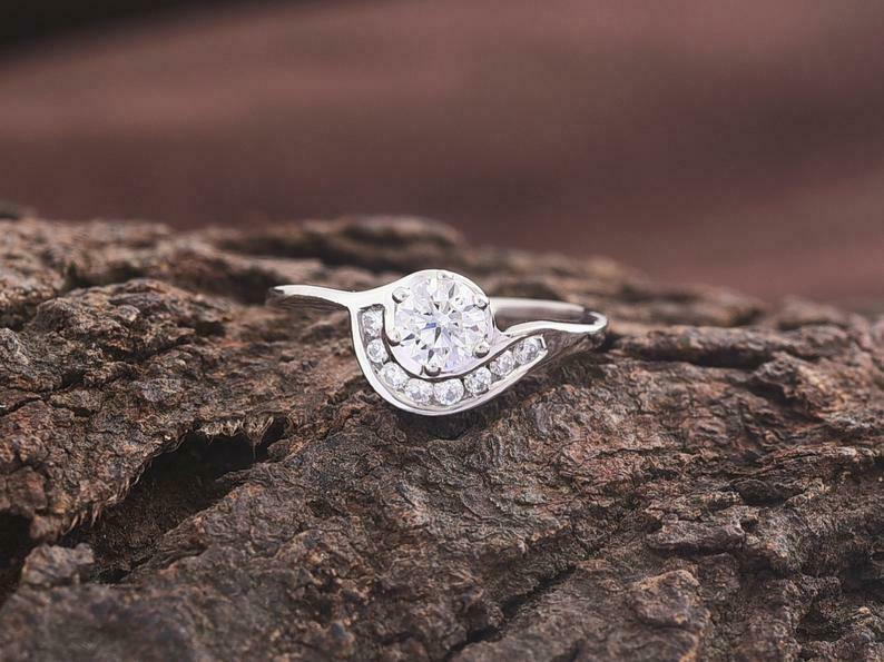 0.5ct Engagement Ring Round Cut Diamond Swirl Halo Minimalist 14k WhiteGold Over