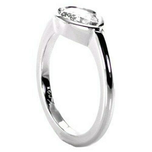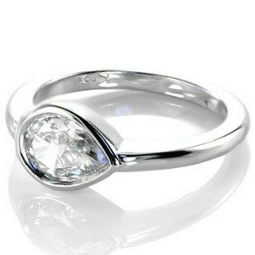 0.5Ct Pear Cut Diamond Bezel Set Solitaire Engagement Ring 14K White Gold Finish