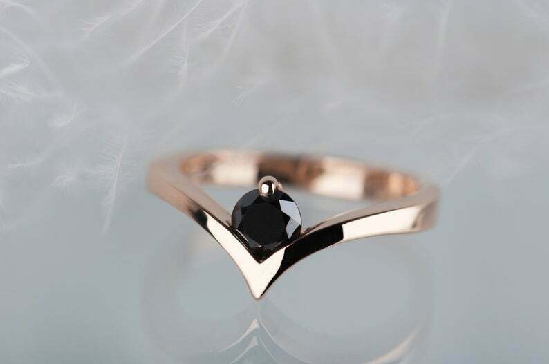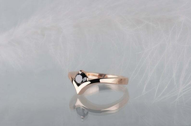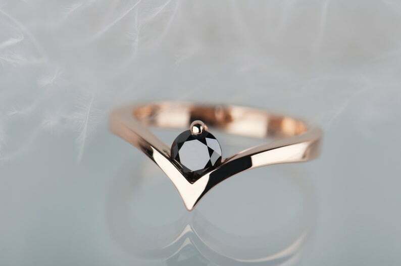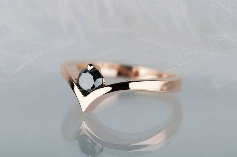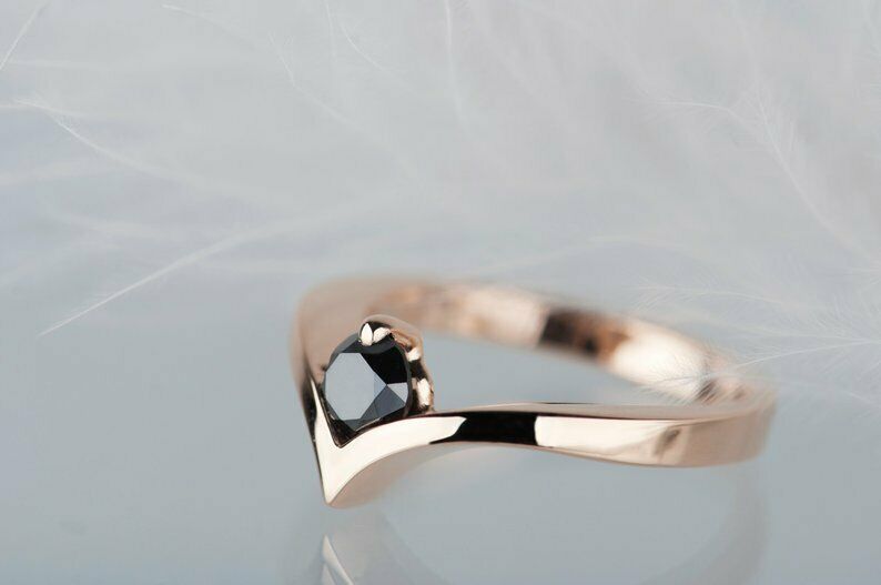 0.5ct Round Cut Black Diamond Engagement Ring Solitaire Curved 14k Rose Gold Over