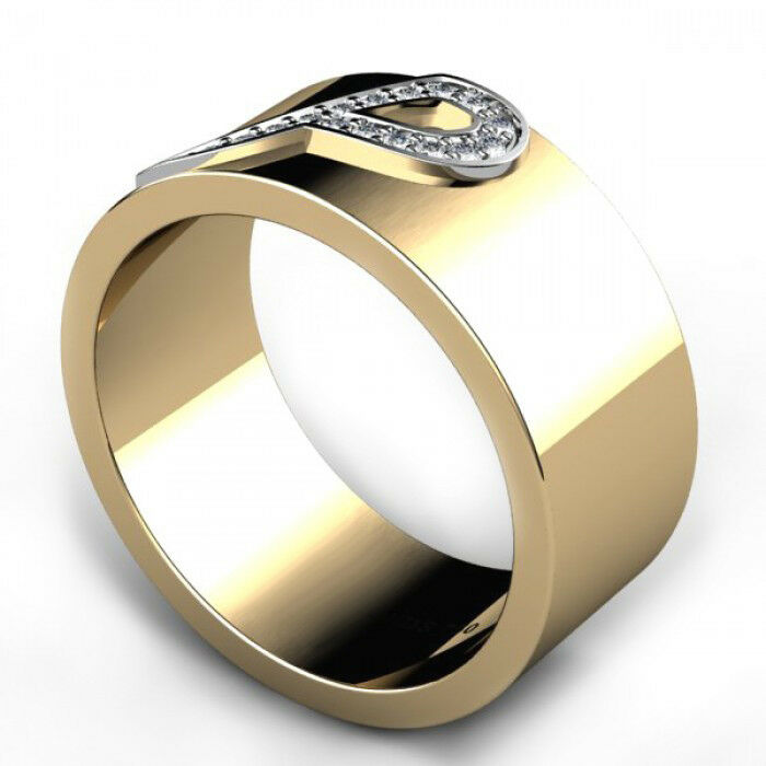 0.5ct Round Cut Diamond Custom Alphabet Mens Wedding Ring 14k Yellow Gold Finish