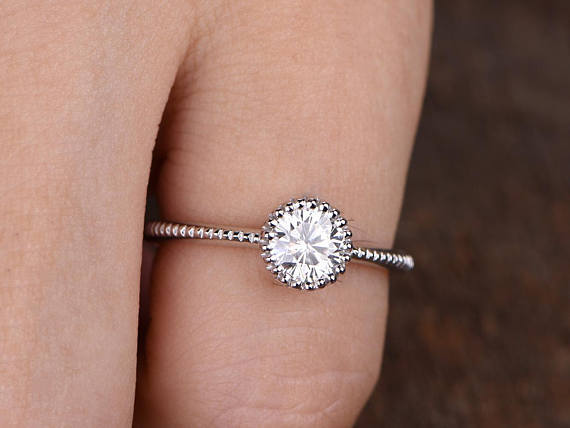 0.5ct Round Cut Diamond Engagement Ring Classic Solitaire 14k White Gold Finish
