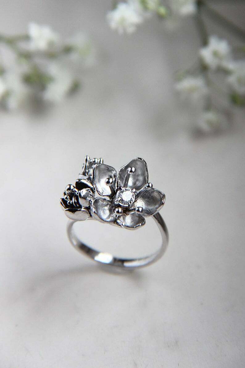0.5ct Round Cut Diamond Engagement Ring Flower Statement 14k White Gold Finish