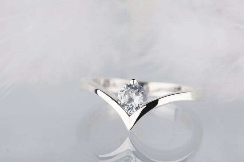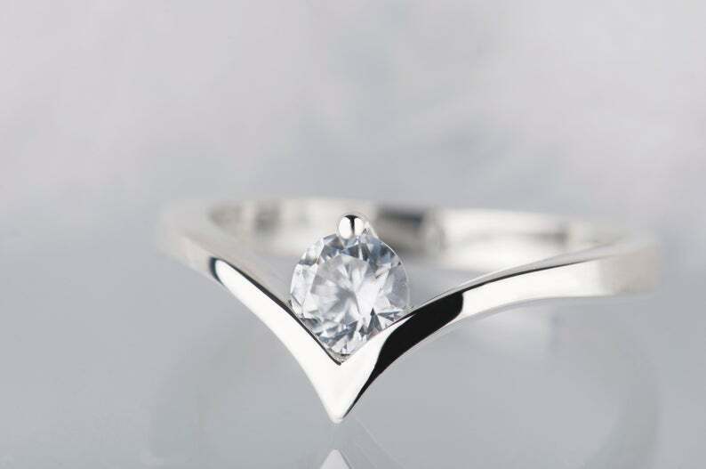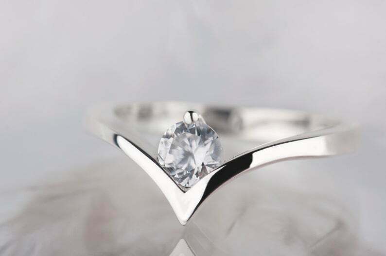 0.5ct Round Cut Diamond Engagement Ring Solitaire Curved 14k White Gold Finish