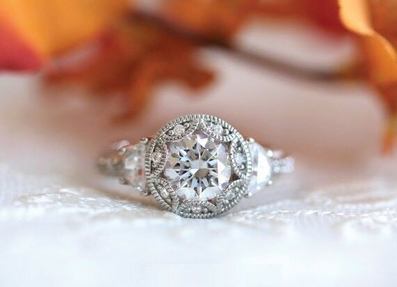 0.5ct Round Cut Diamond Filigree Solitaire Engagement Ring 18k WhiteGold Finish