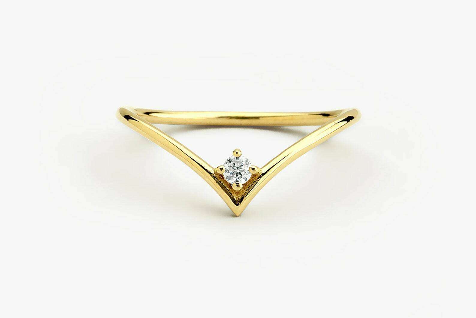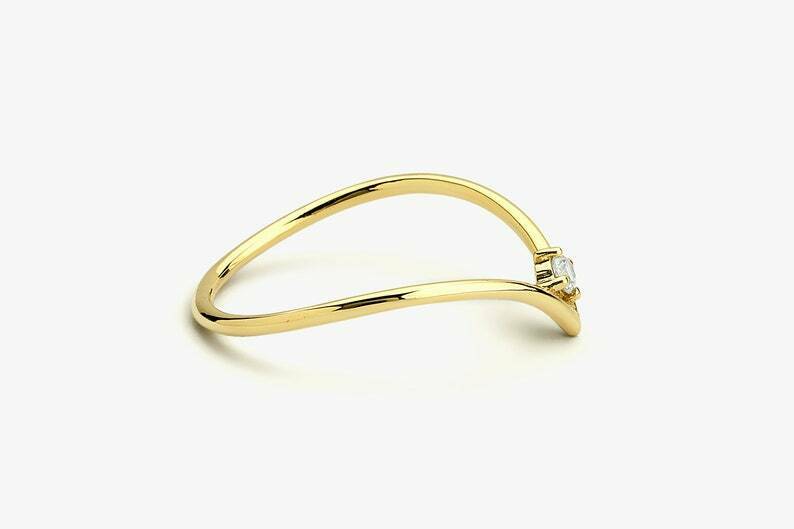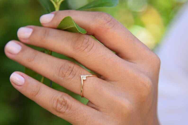 0.5ct Round Cut Diamond V Shaped Curved Stackable Band 14k Yellow Gold Finish