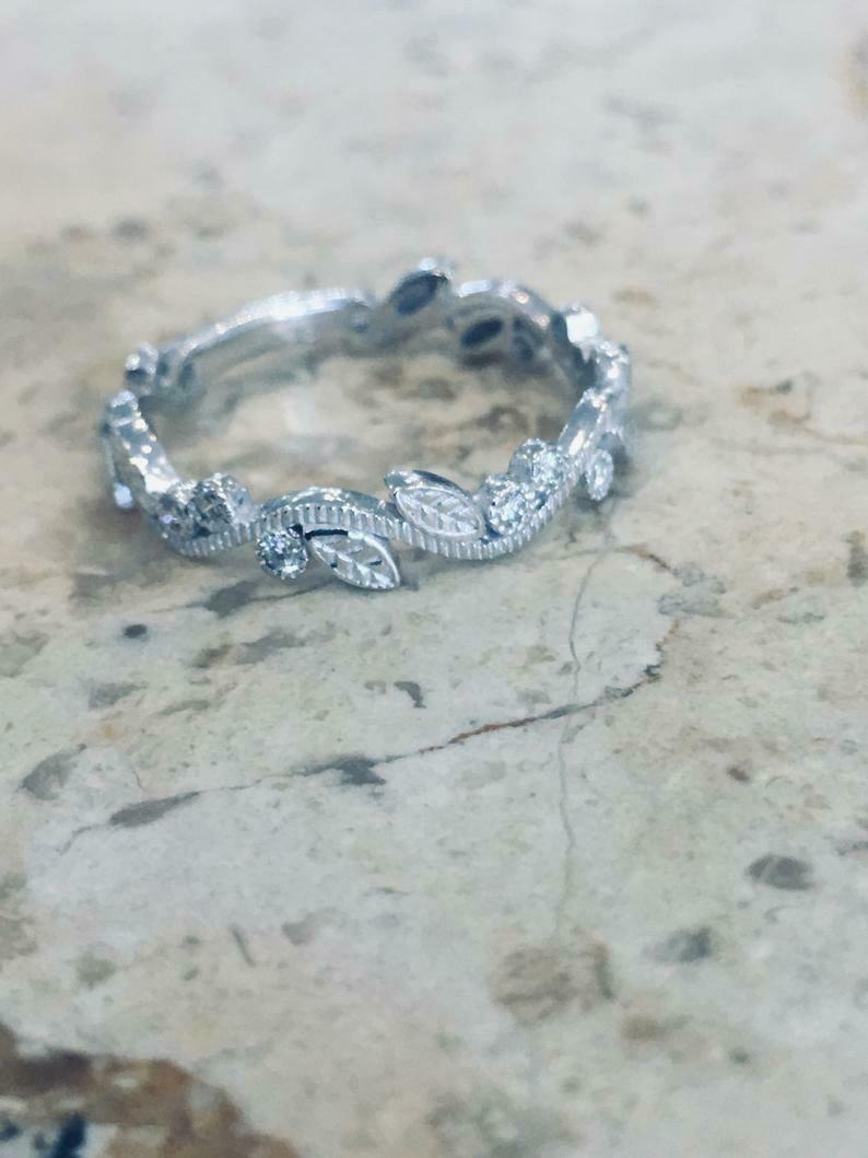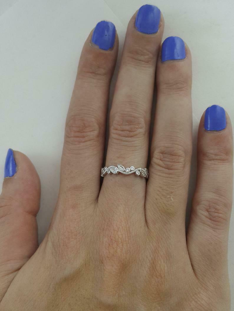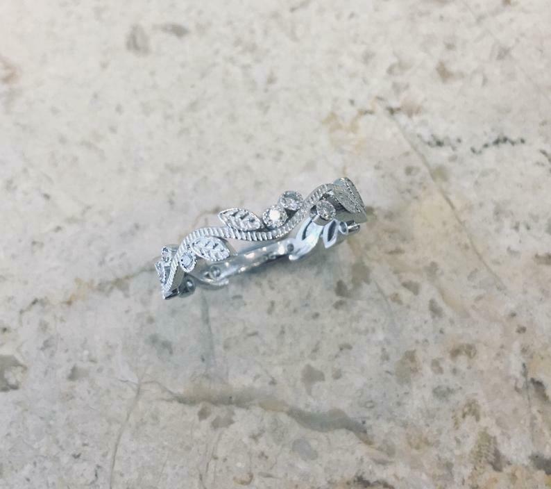 0.5ct Round Cut Diamond Wedding Band Leaf Petals Minimalist 14k WhiteGold Finish