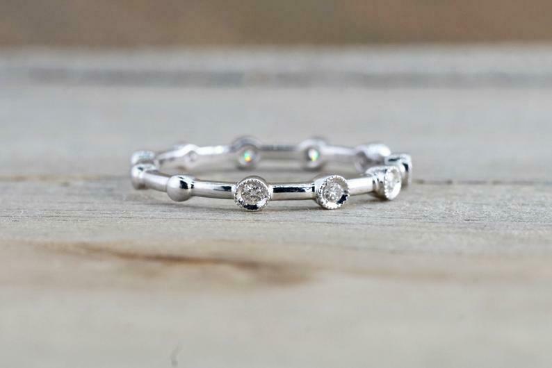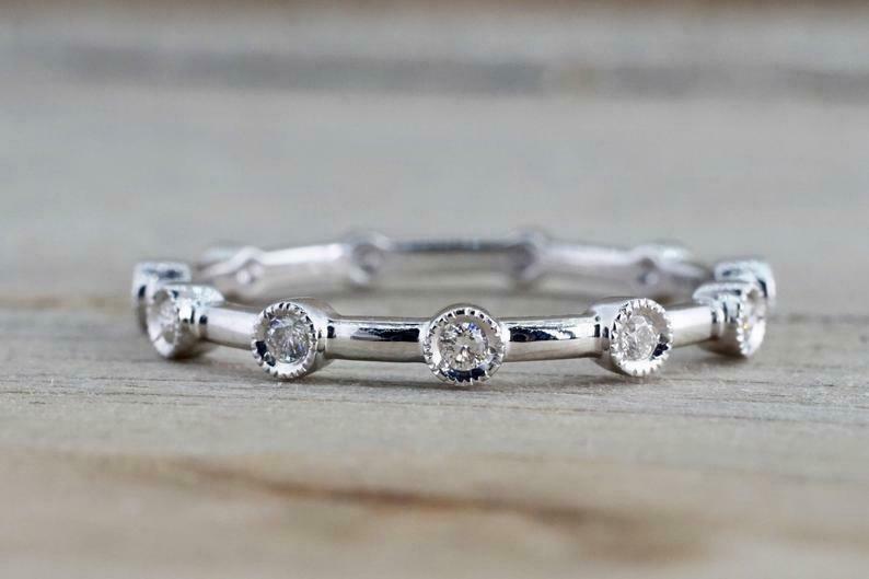 0.5ct Round Cut Diamond Wedding Ring Band 14k White Gold Finish Bezel Set Petite