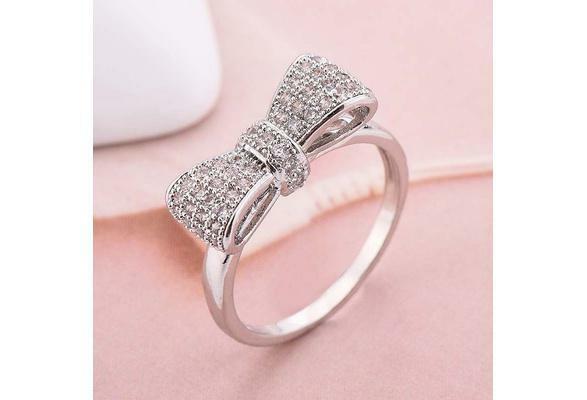 0.5ct Round Cut VVS1 D Diamond Bow Knot Engagement Ring 14k White Gold Finish
