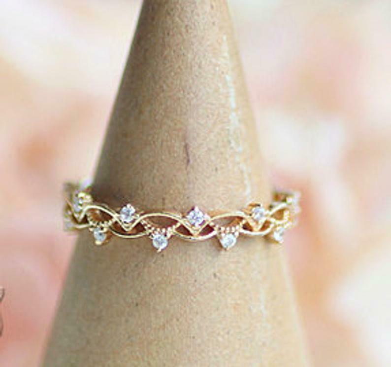 0.5ct Round Cut VVS1 Diamond Engagement Ring Petite Tiara 14k Yellow Gold Finish