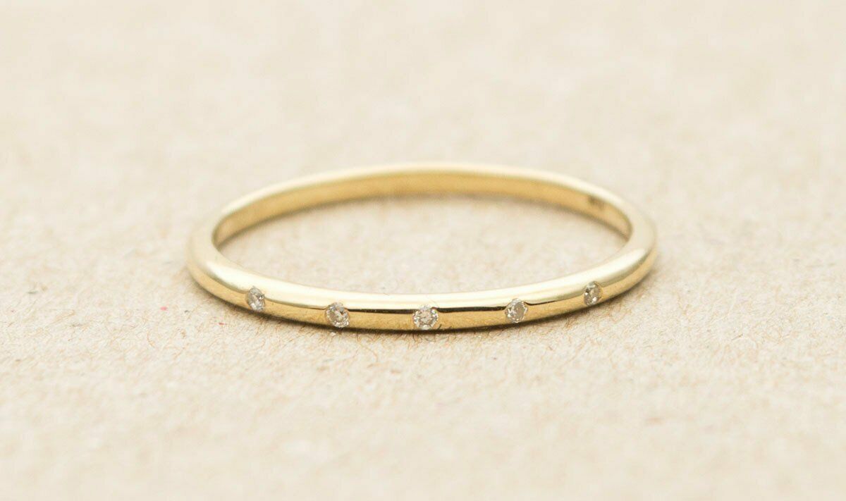 0.5ct Round Cut VVS1 Diamond Minimalist Wedding Ring Band 14k Yellow Gold Finish