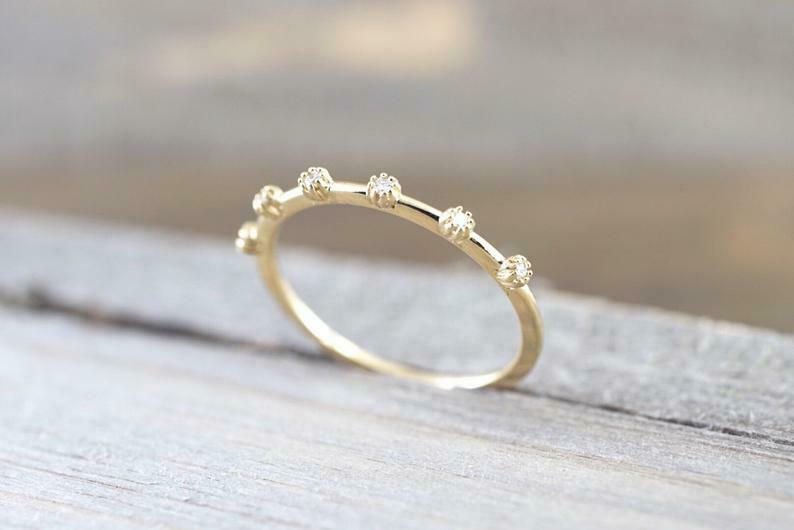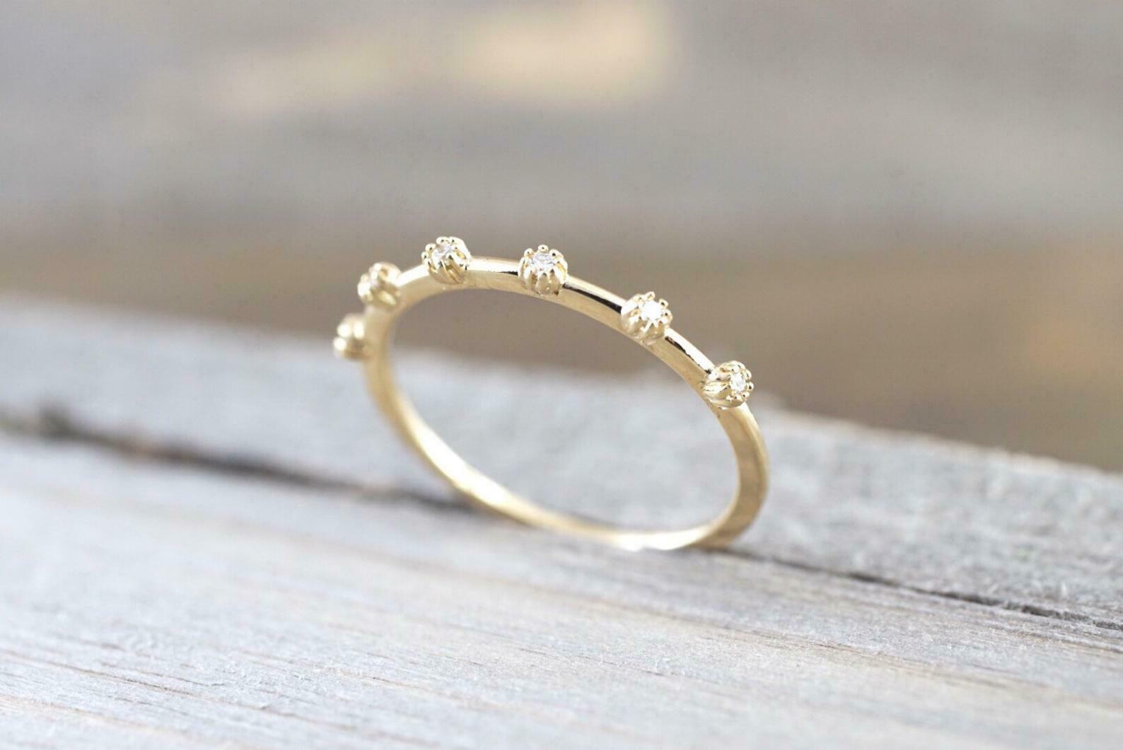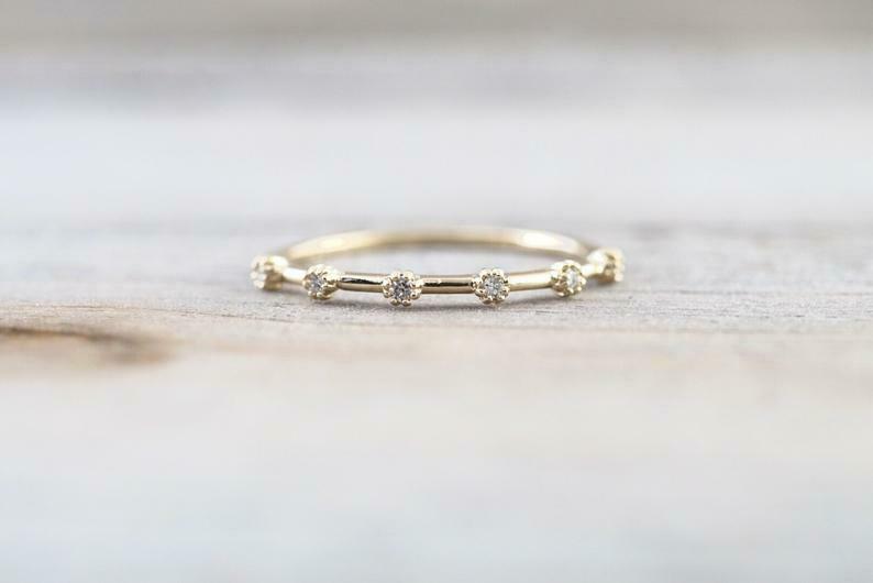 0.5ct Round Cut VVS1 Diamond Wedding Band 14k Yellow Gold Finish Minimalist Thin