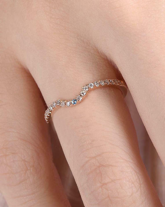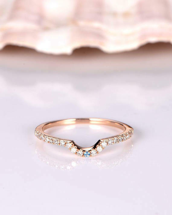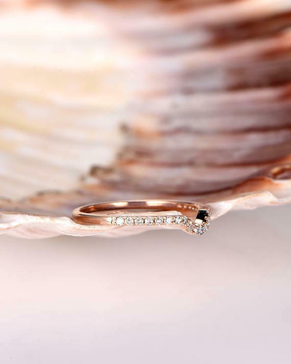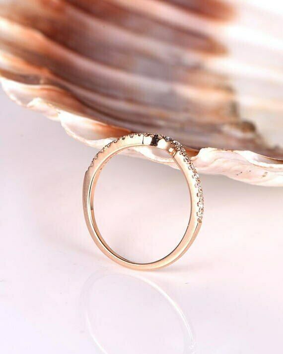 0.5ct Round Cut VVS1D Diamond Petite Curved Engagement Ring 14k Rose Gold Finish