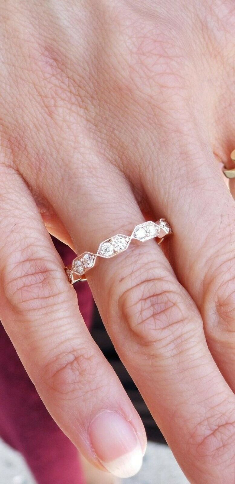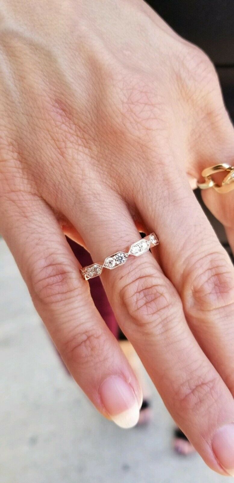 0.5ct Wedding Band Round Cut Diamond Half Eternity Stackable 14k RoseGold Finish