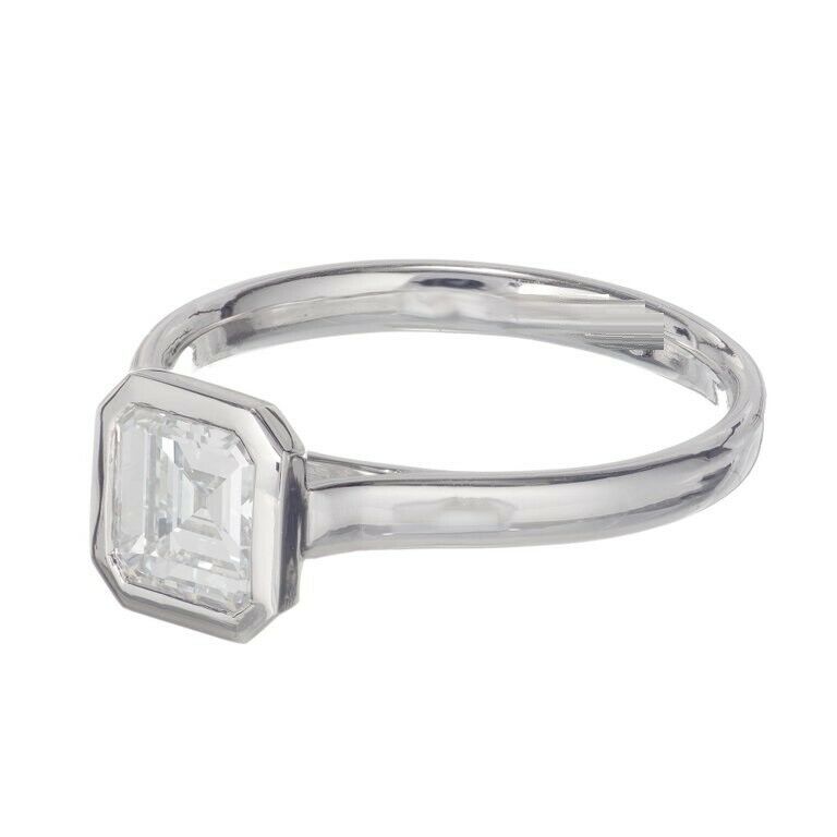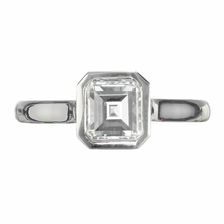 0.6ct Asscher Cut Diamond Engagement Ring Bezel Set Solitaire 14k WhiteGold Over