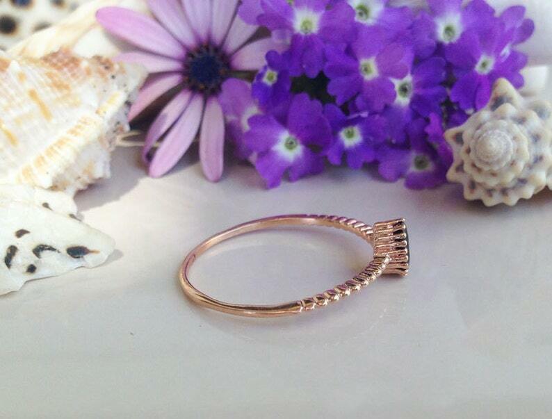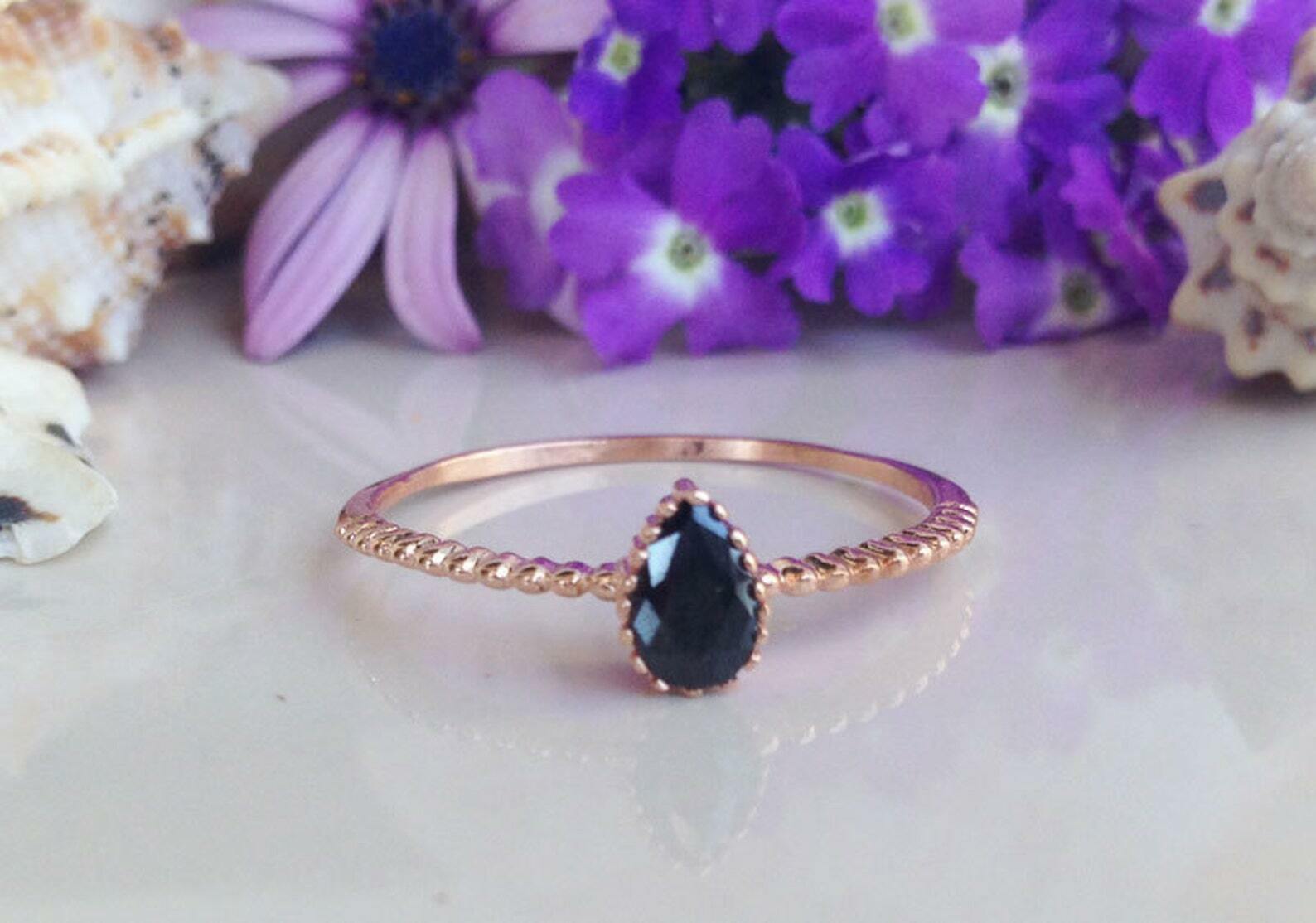 0.6ct Engagement Ring Pear Cut Black Diamond Solitaire 14k Rose Gold Finish