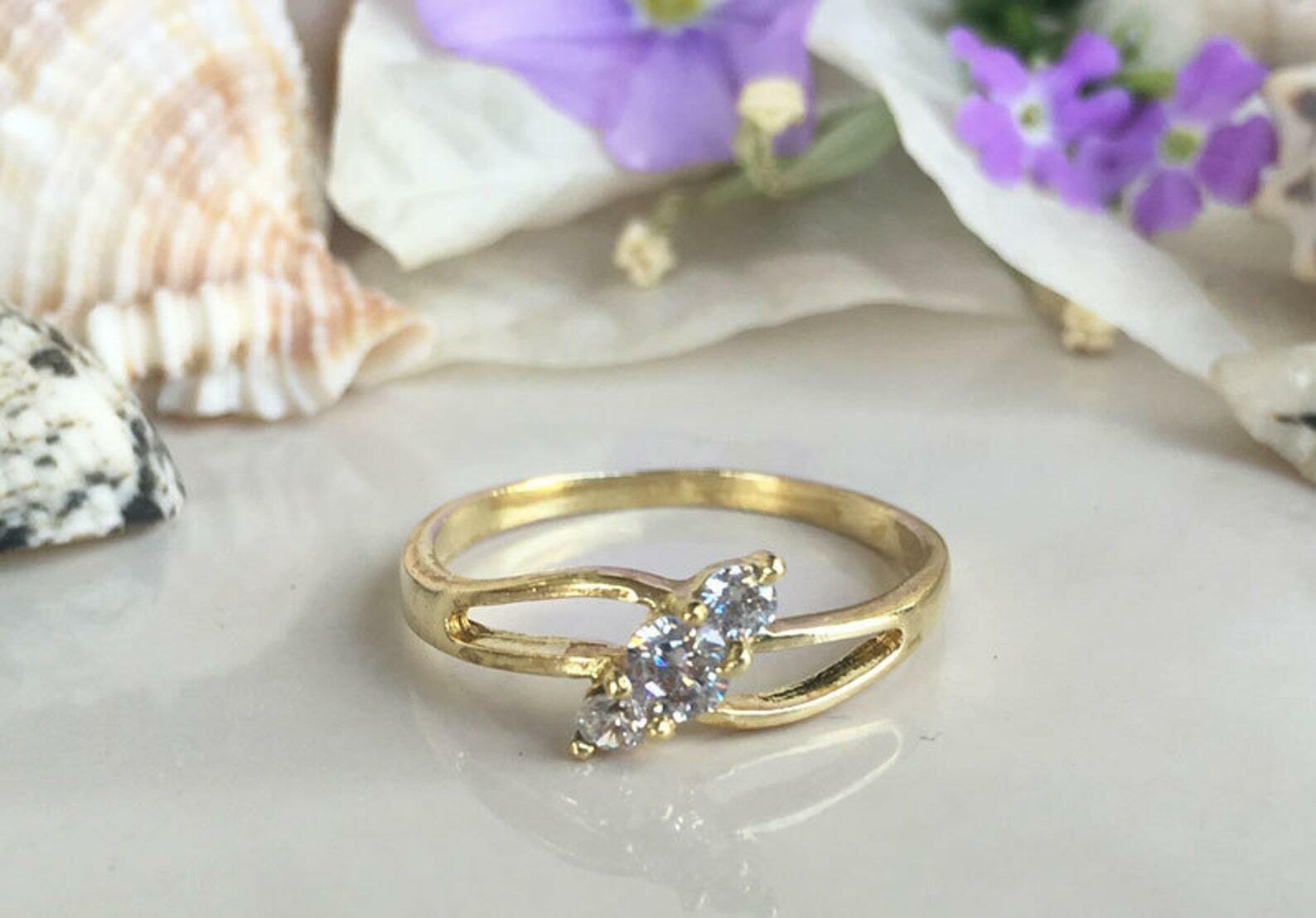 0.6ct Engagement Ring Round Cut Diamond Split Shank Trilogy 14k Yellow Gold Over