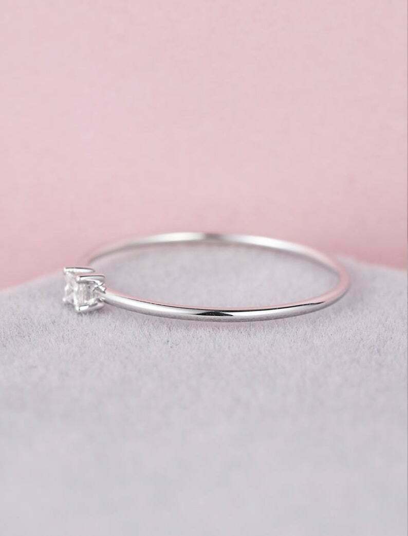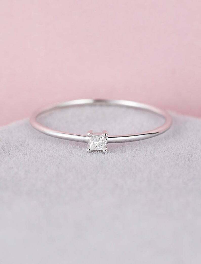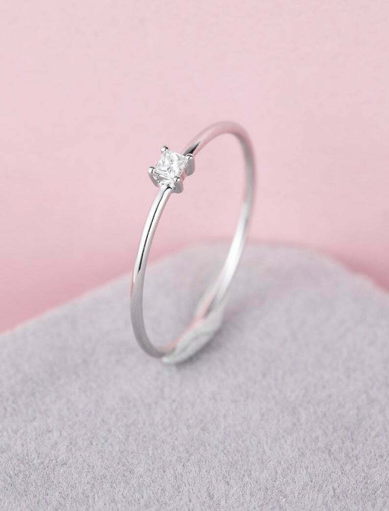 0.6ct Princess Cut Diamond Engagement Ring Solitaire Minimalist 14k White Gold Over