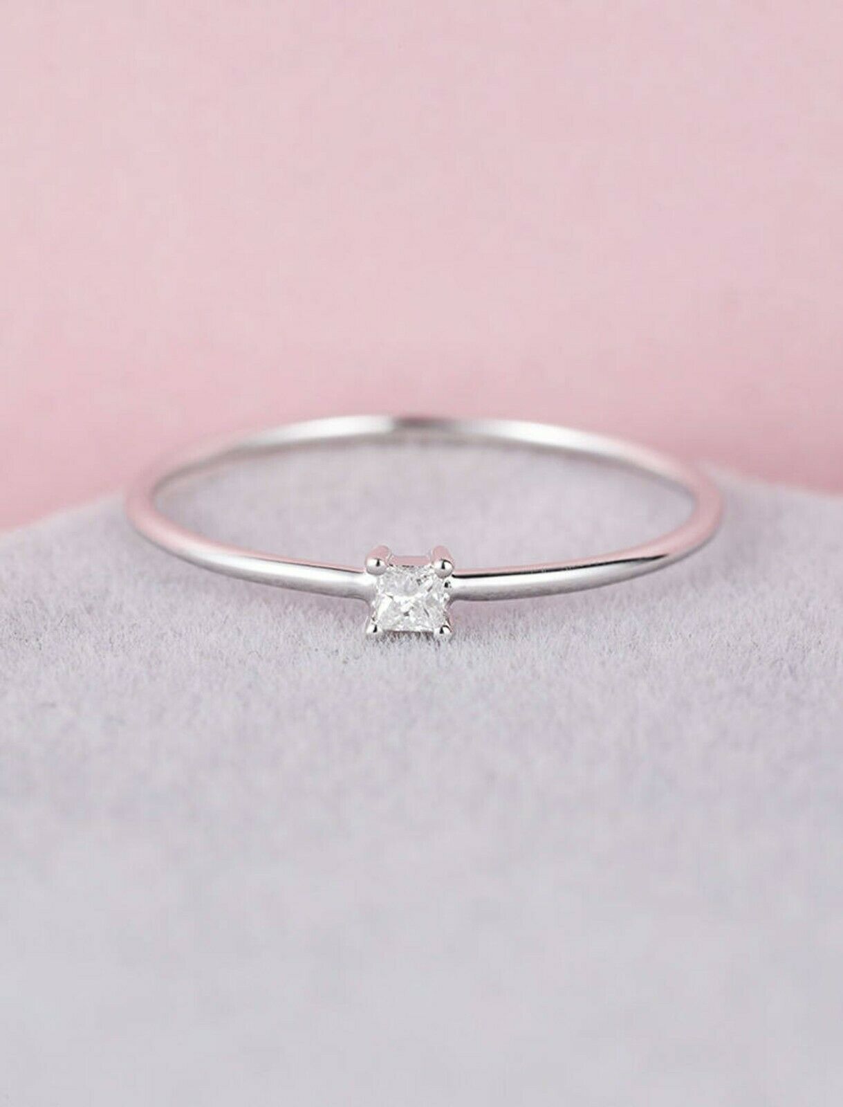 0.6ct Princess Diamond Engagement Ring Solitaire Minimalist 14k White Gold Over