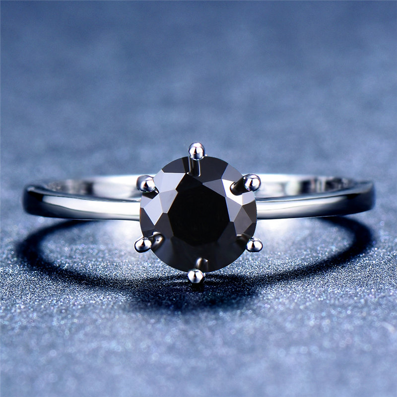 0.6ct Round Black Diamond Engagement Ring 14k WhiteGold Finish Solitaire Promise