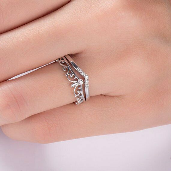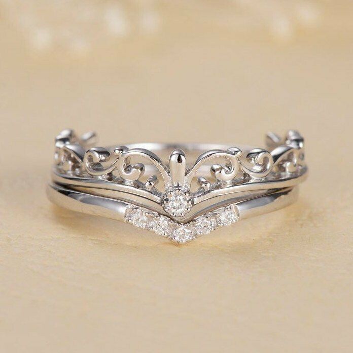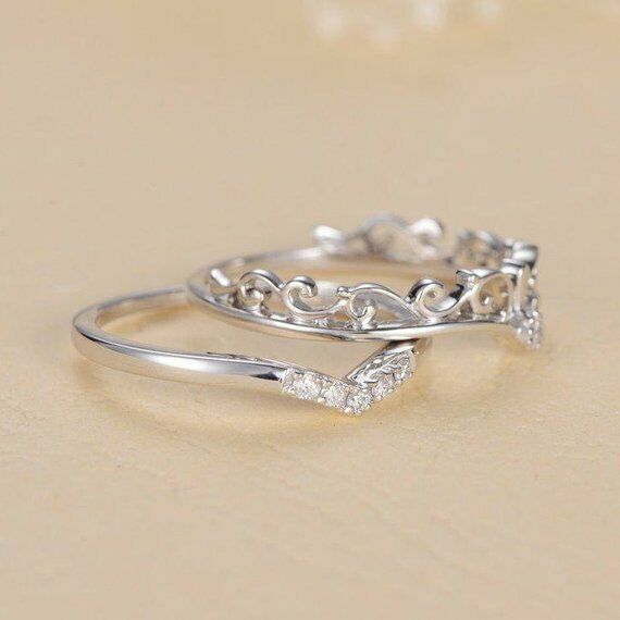 0.6ct Round Cut Diamond Engagement Ring 14k White Gold Finish Crown Bridal Set