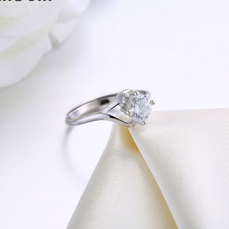 0.6ct Round Cut Diamond Engagement Ring 14k White Gold Finish Solitaire Split