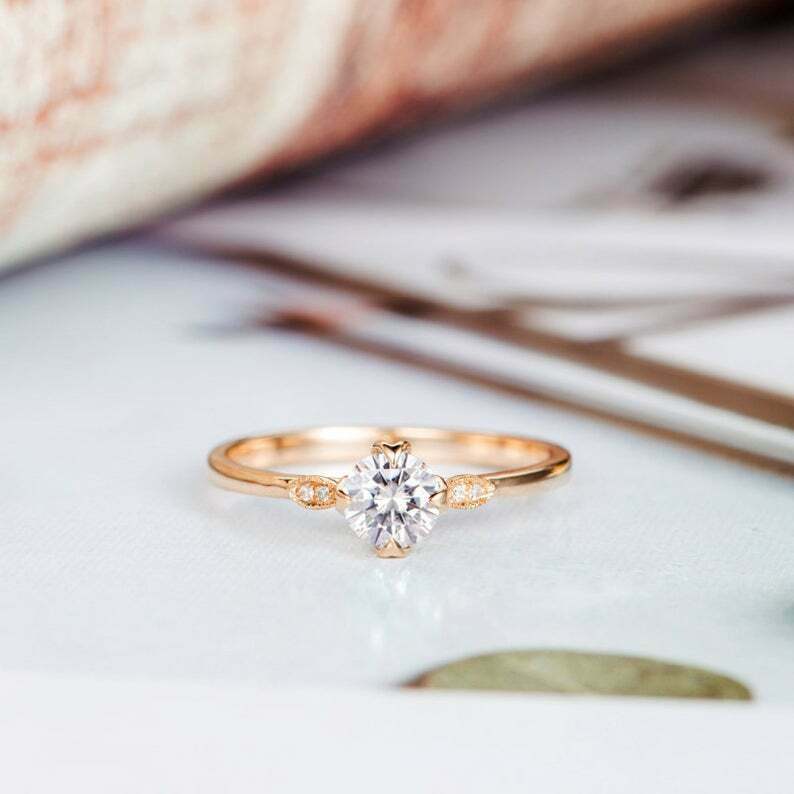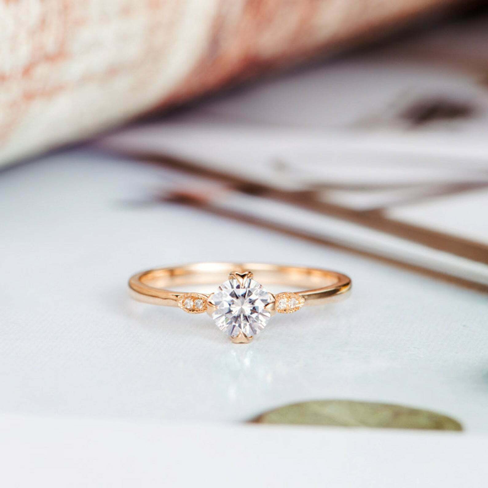 0.6ct Round Cut Diamond Minimalist Dainty Engagement Ring 14k Rose Gold Finish