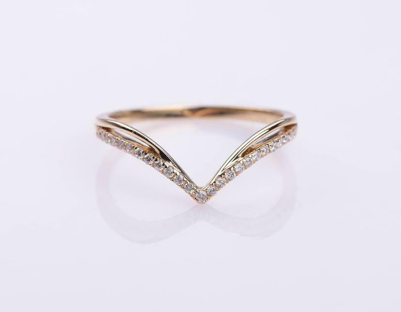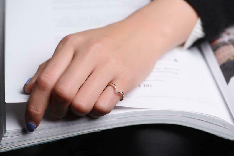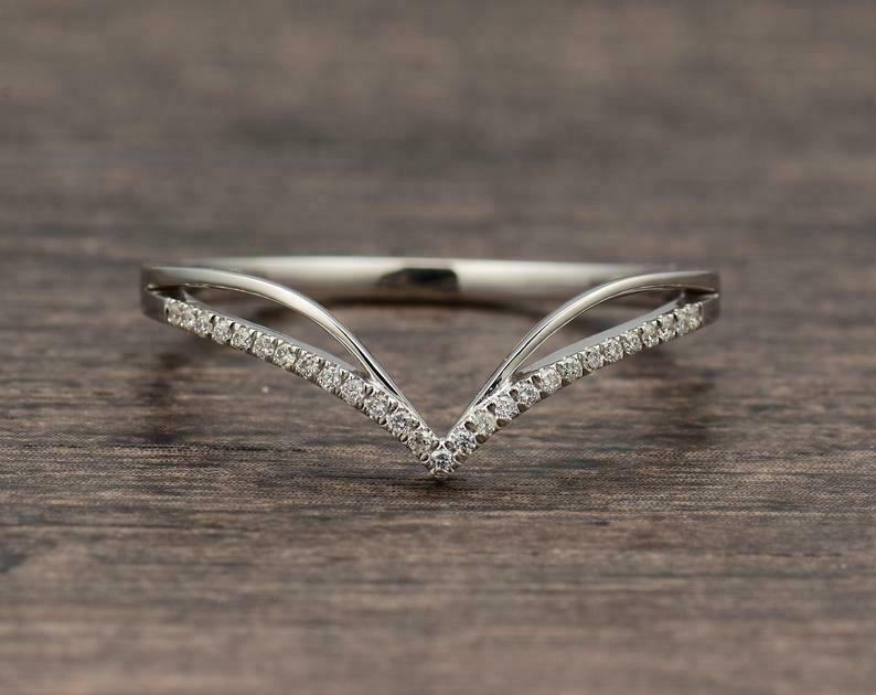 0.6ct Round Cut Diamond Wedding Band V Shaped Stylish Curved 14k White Gold Over
