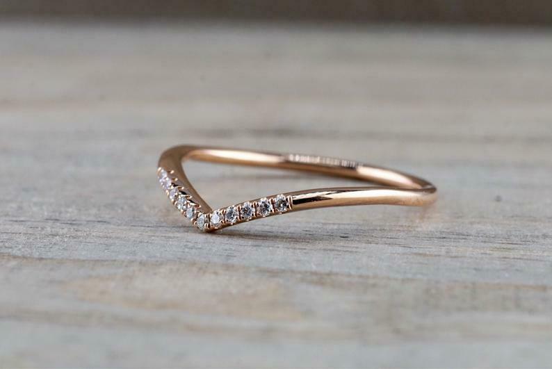 0.6ct Round Cut VVS1 Diamond Wedding Band 14k Rose Gold Finish Curved Minimalist