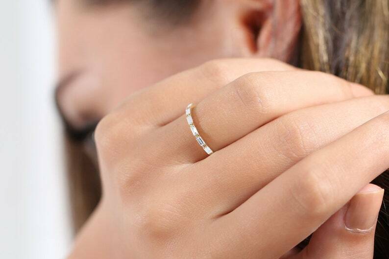 0.6ct Wedding Ring Band Baguette Cut Diamond Half Eternity 14k YellowGold Finish
