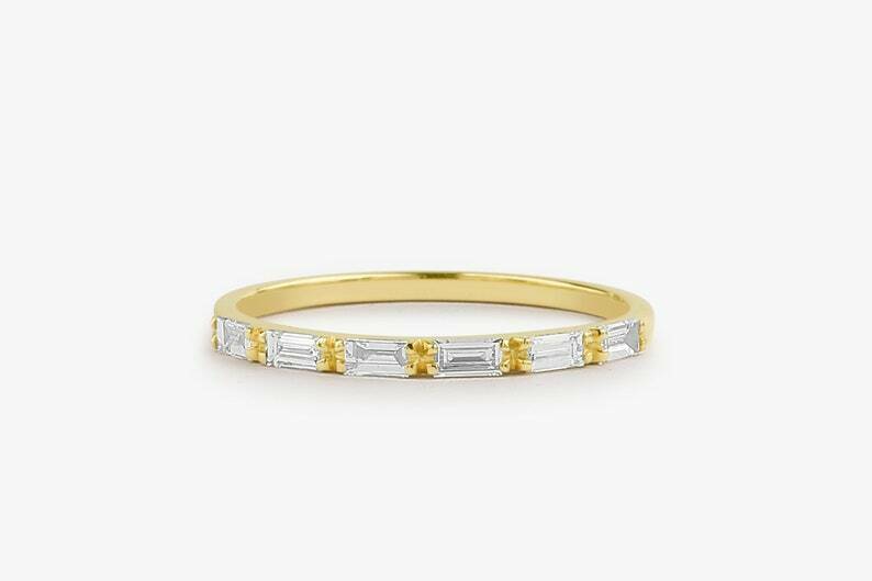 0.6ct Wedding Ring Band Baguette Cut Diamond Half Eternity 14k Yellow Gold Finish