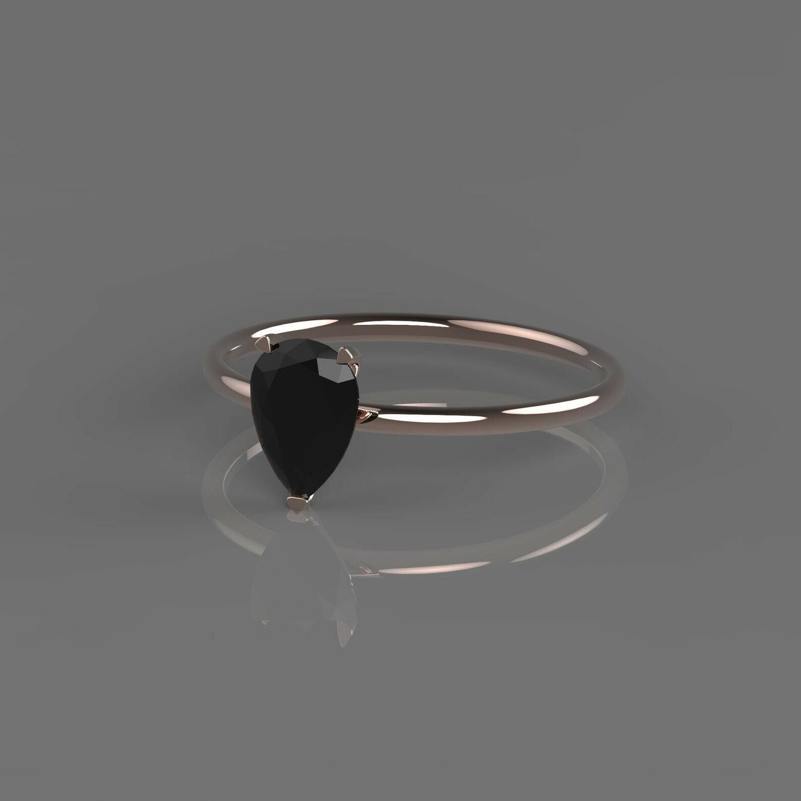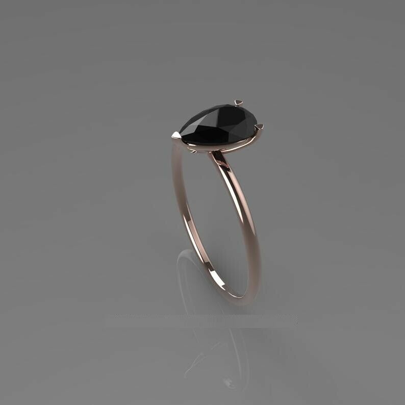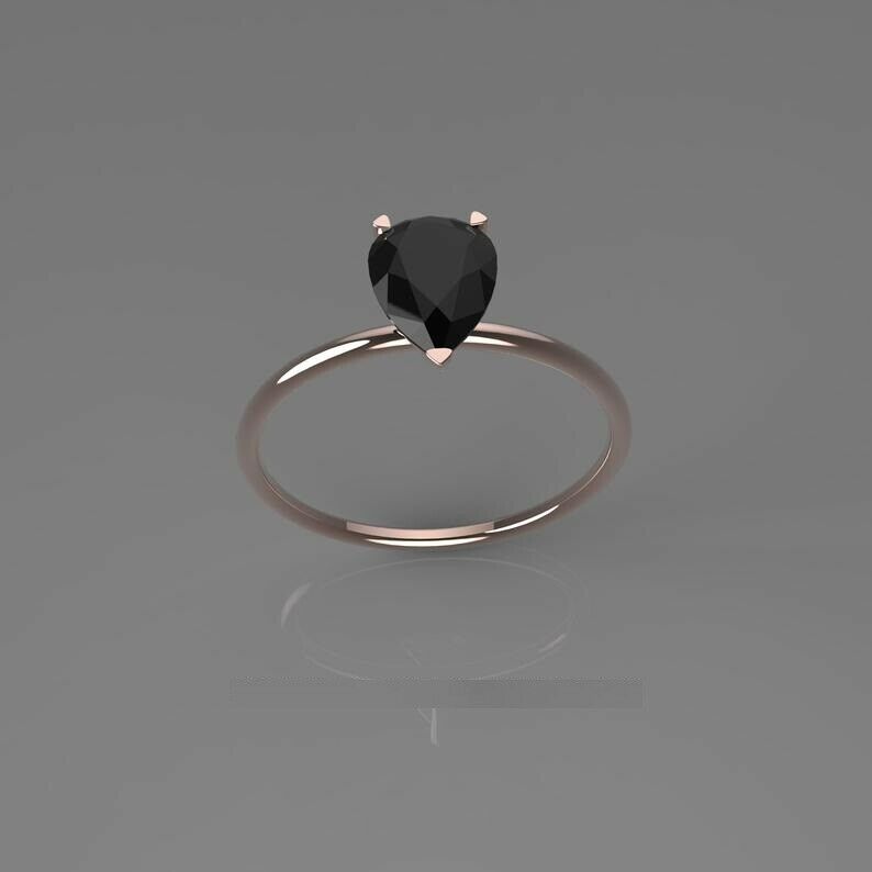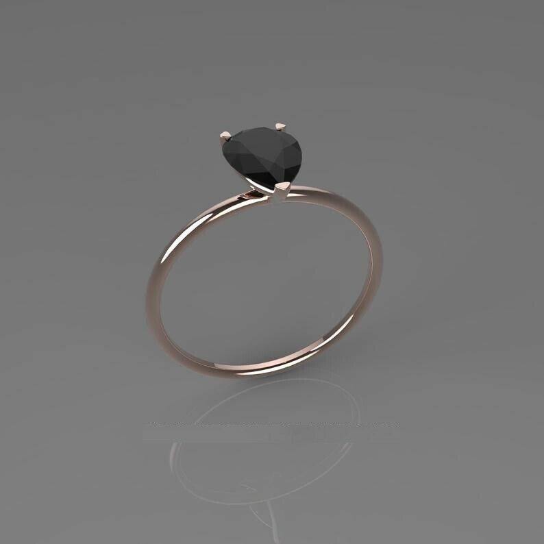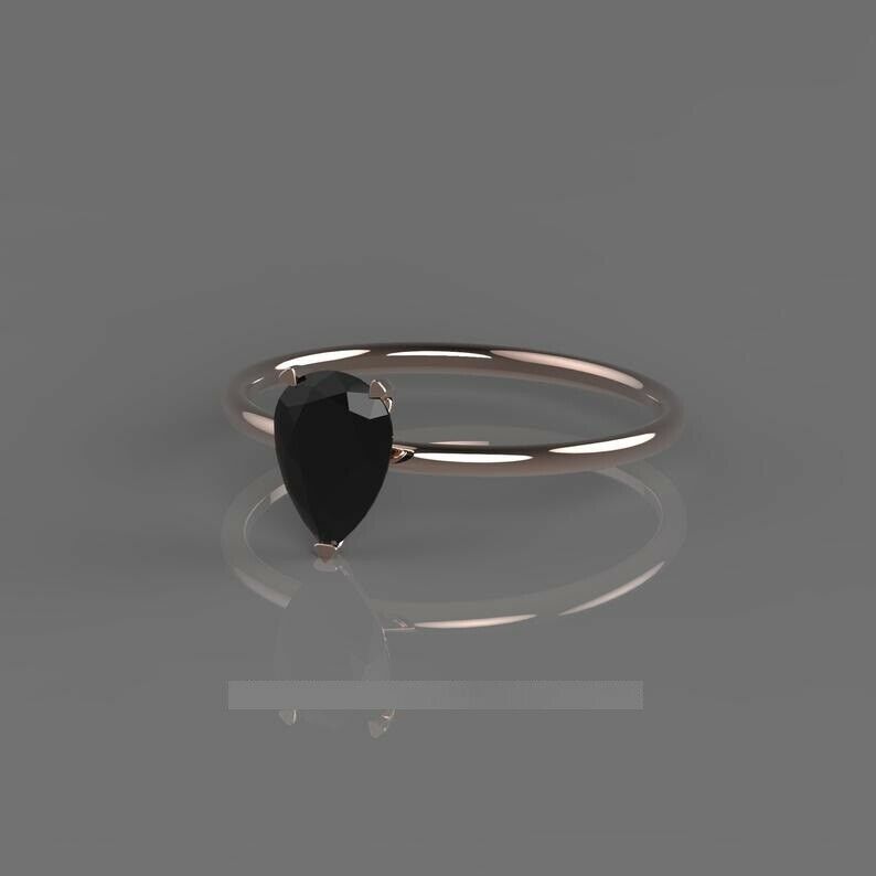 0.75ct Pear Cut Black Diamond Engagement Ring Solitaire Women 14k Rose Gold Over