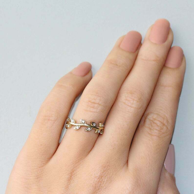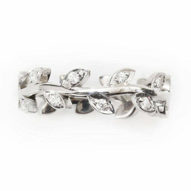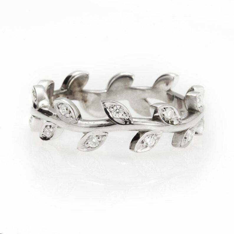 0.75ct Round Cut Diamond Wedding Ring Band Floral Leaf 14k White Gold Finish