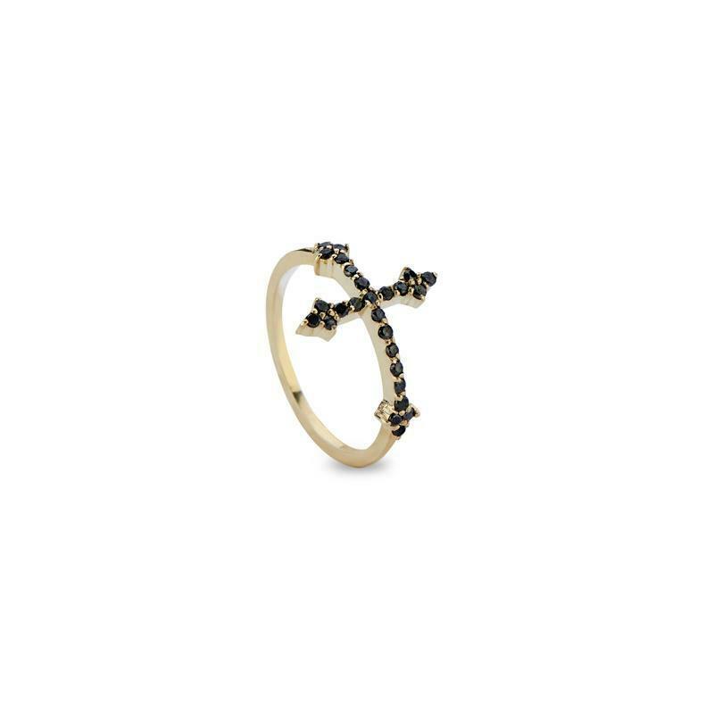 0.7ct Round Cut Black Diamond Engagement Ring 14k YellowGold Finish Cross Design