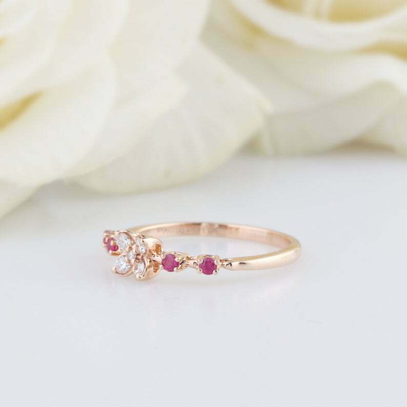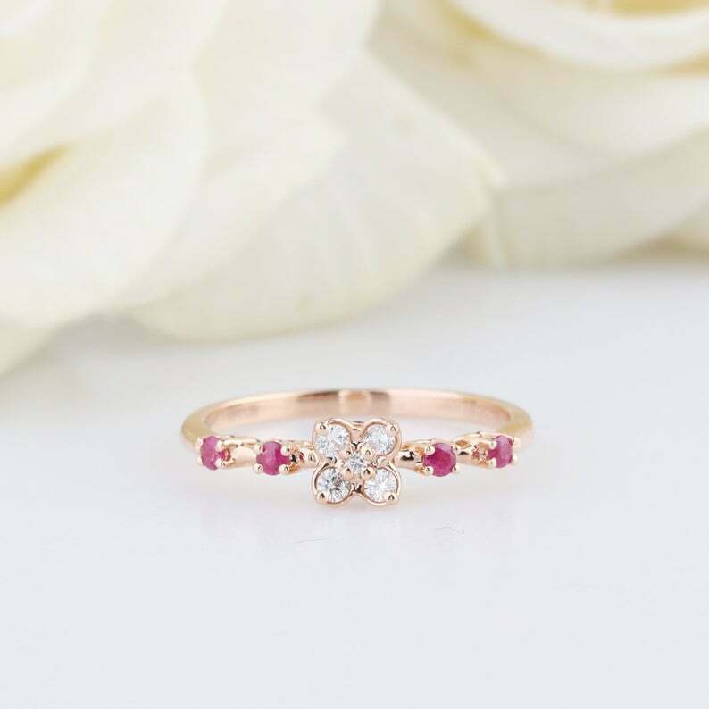 0.7ct Round Cut Diamond Engagement Ring Flower Minimalist 14k Rose Gold Finish
