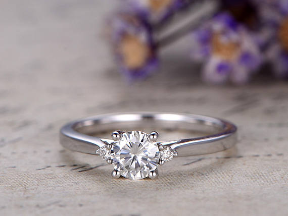 0.7ct Round Cut Diamond Engagement Ring Trilogy Solitaire 14k White Gold Finish