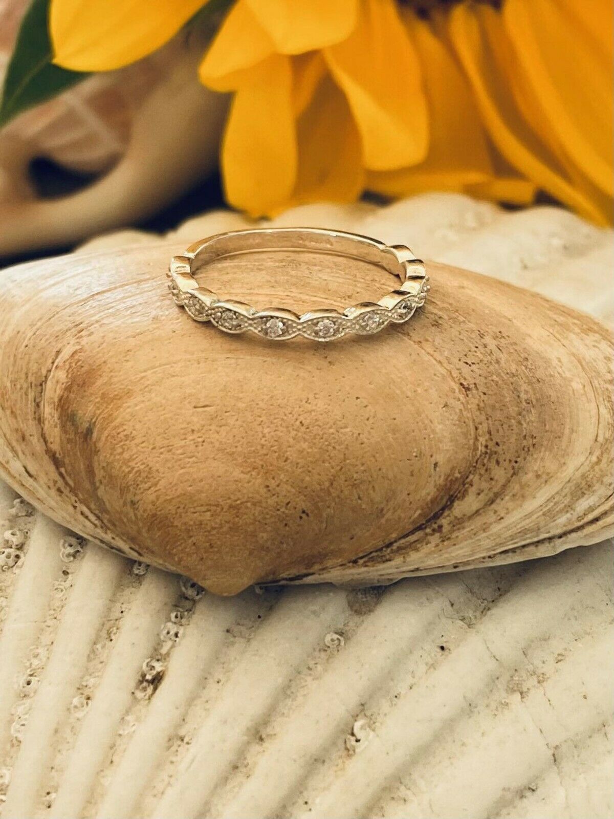 0.7ct Round Cut Diamond Milgrain Half Eternity Wedding Band 14k WhiteGold Finish