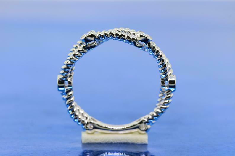 0.7ct Round Cut Diamond Wedding Band Braided Rope Infinity 14k White Gold Finish