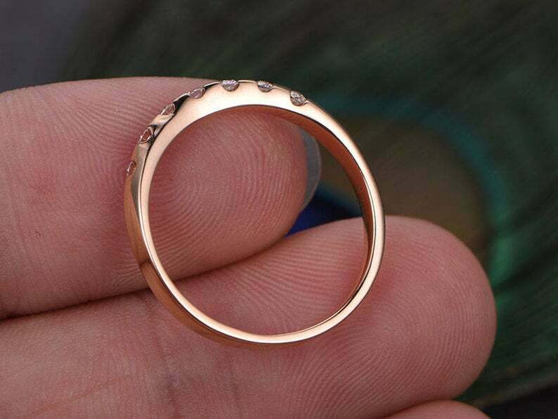0.7ct Round Cut Diamond Wedding Band Stackable Minimalist 14k Rose Gold Finish