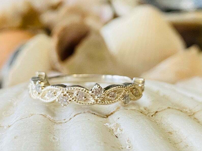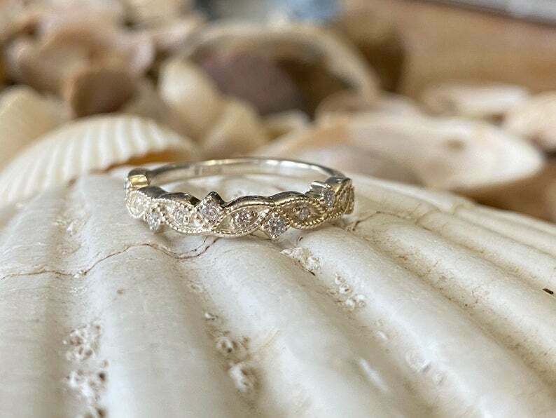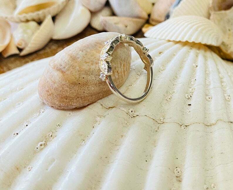 0.7ct Wedding Band Round Cut Diamond Half Eternity Stackable 14k White Gold Over