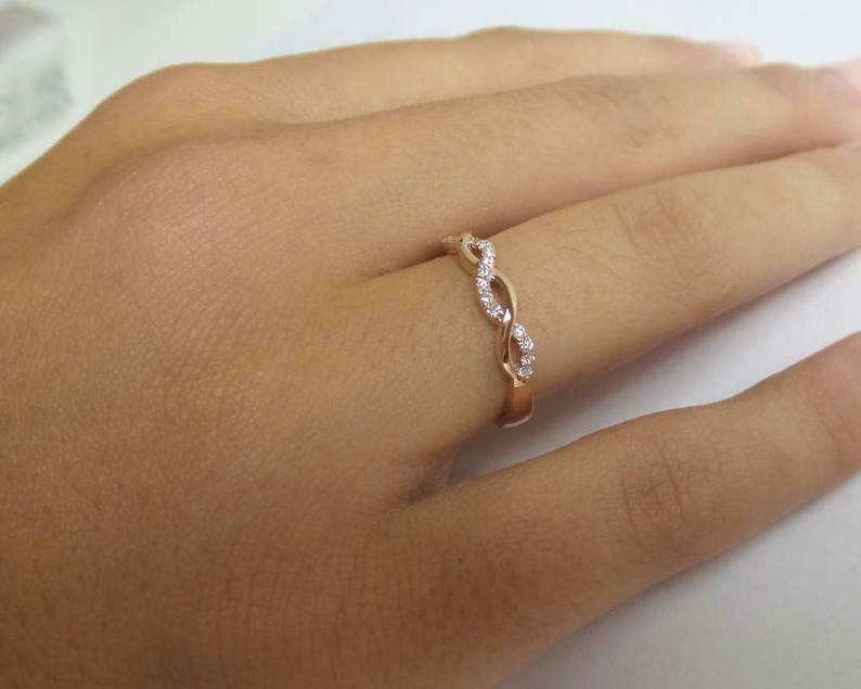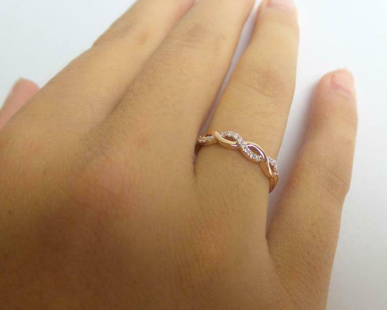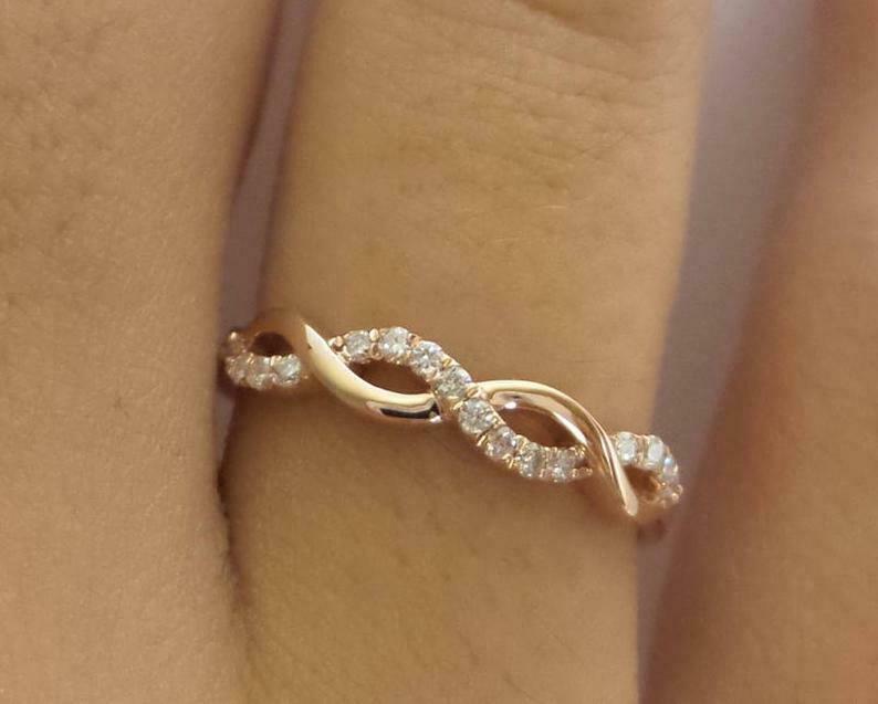 0.7ct Wedding Ring Band Round Cut Diamond Infinity Design 14k Rose Gold Finish