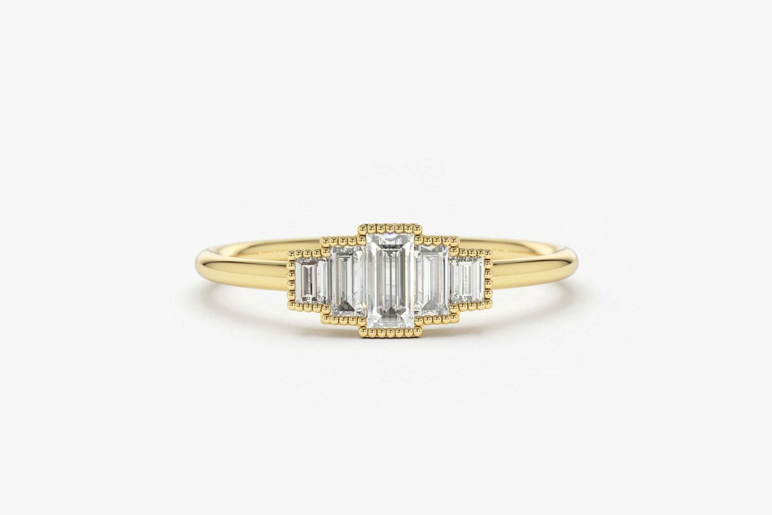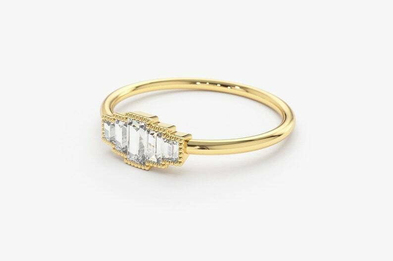 0.8ct Engagement Ring Baguette Cut Diamond 5 Stone Art Deco 14k Yellow Gold Over