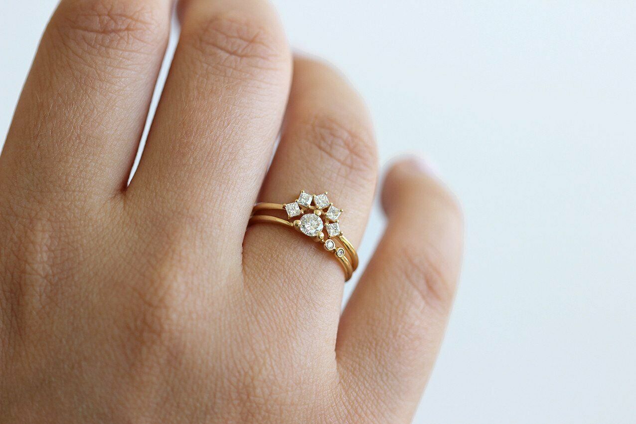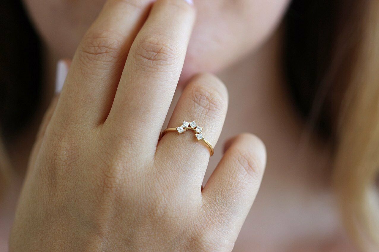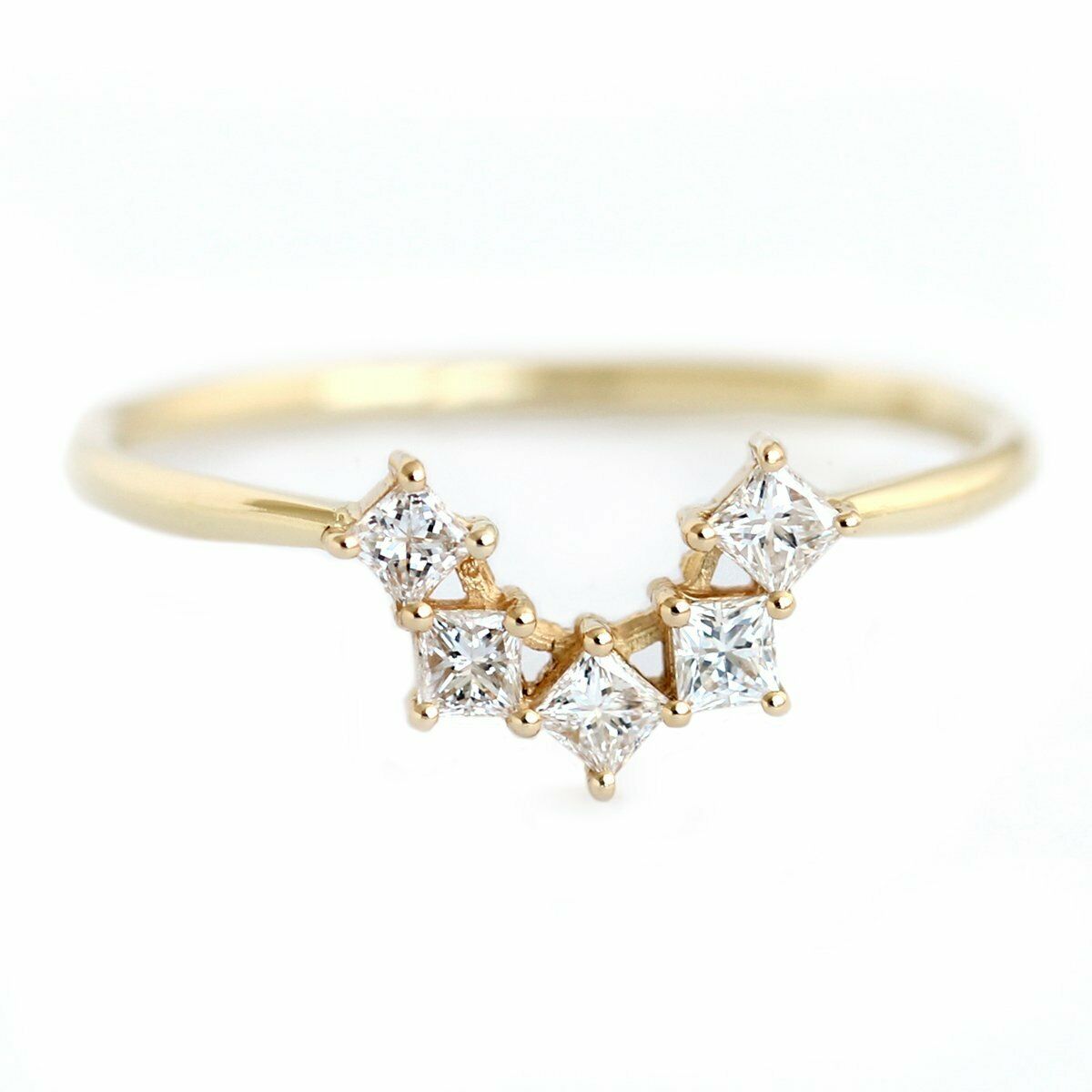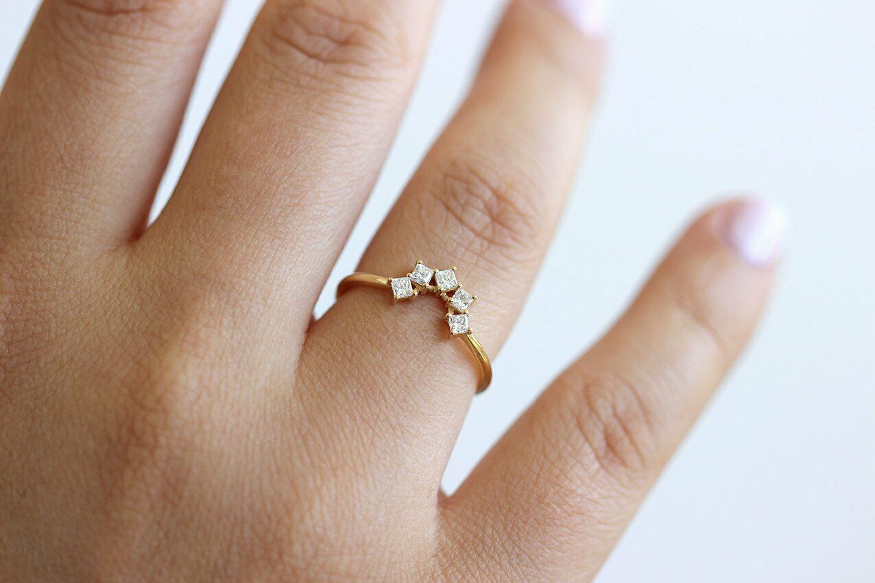 0.8ct Princess Cut Diamond Wedding Band 14k Yellow Gold Finish Curved Stackable