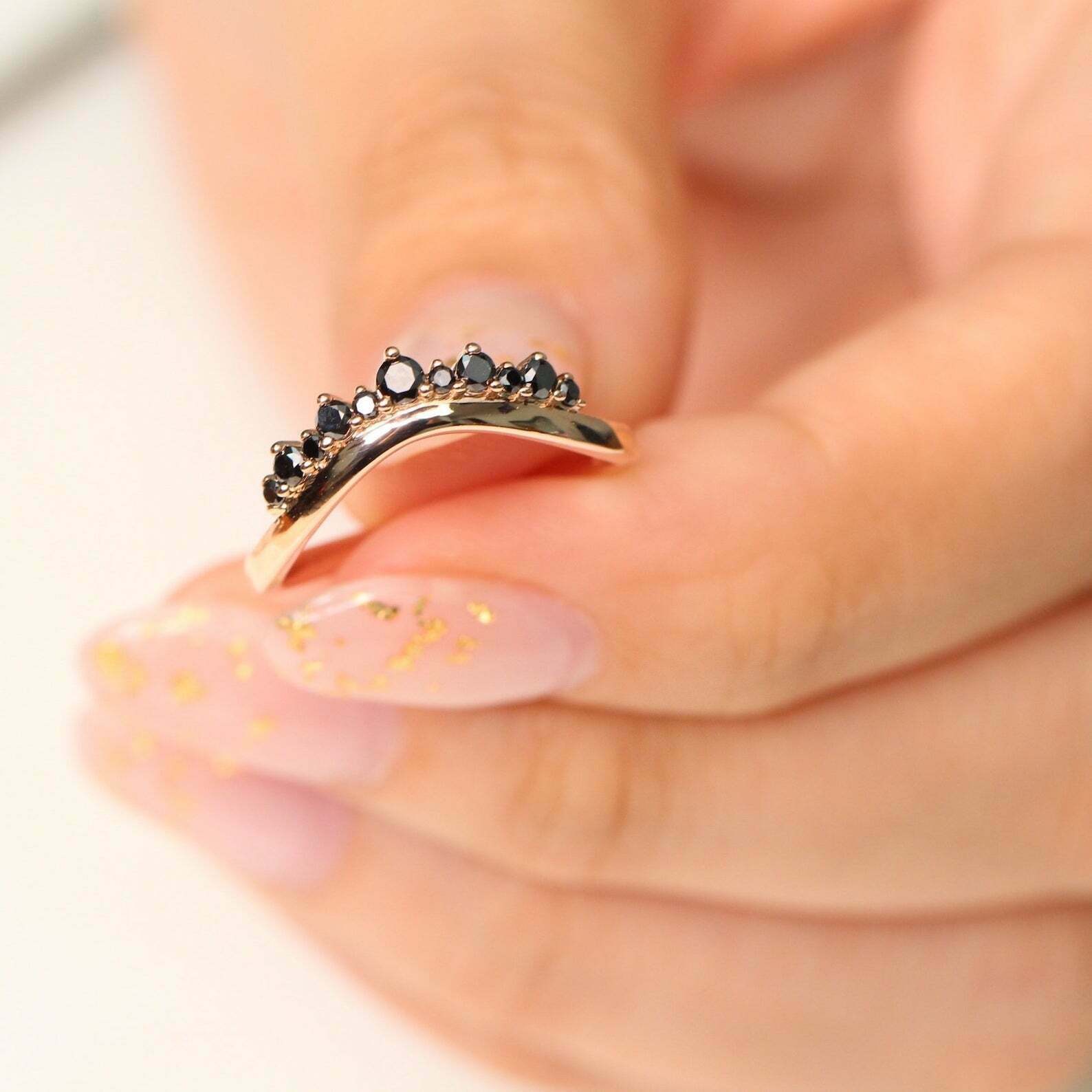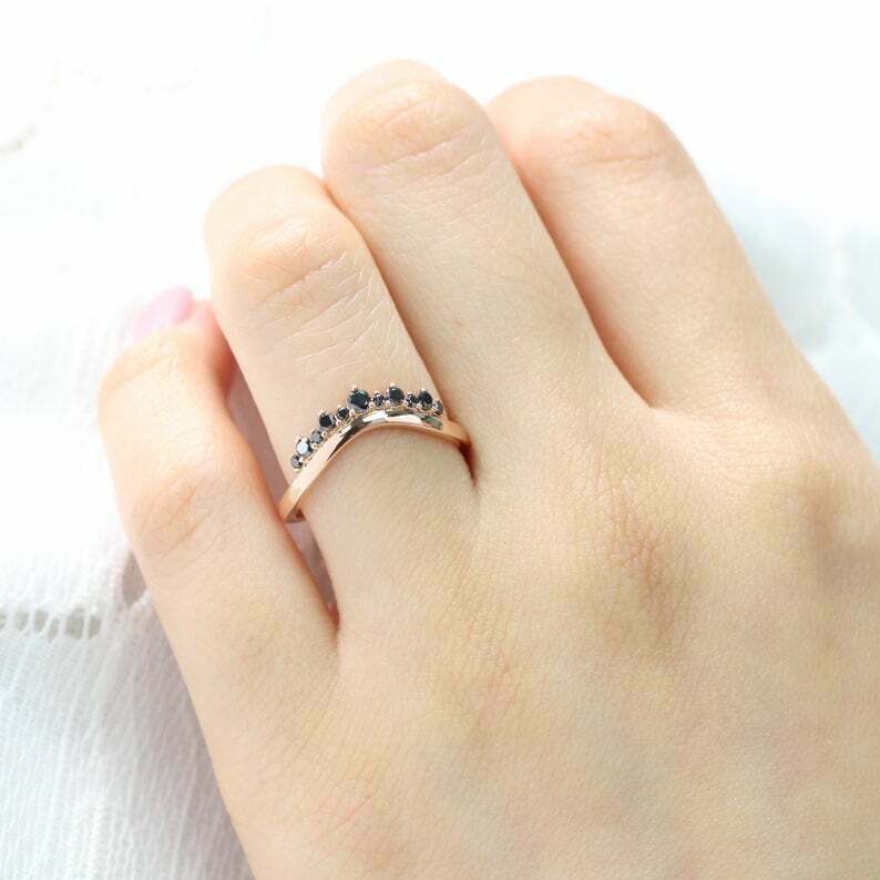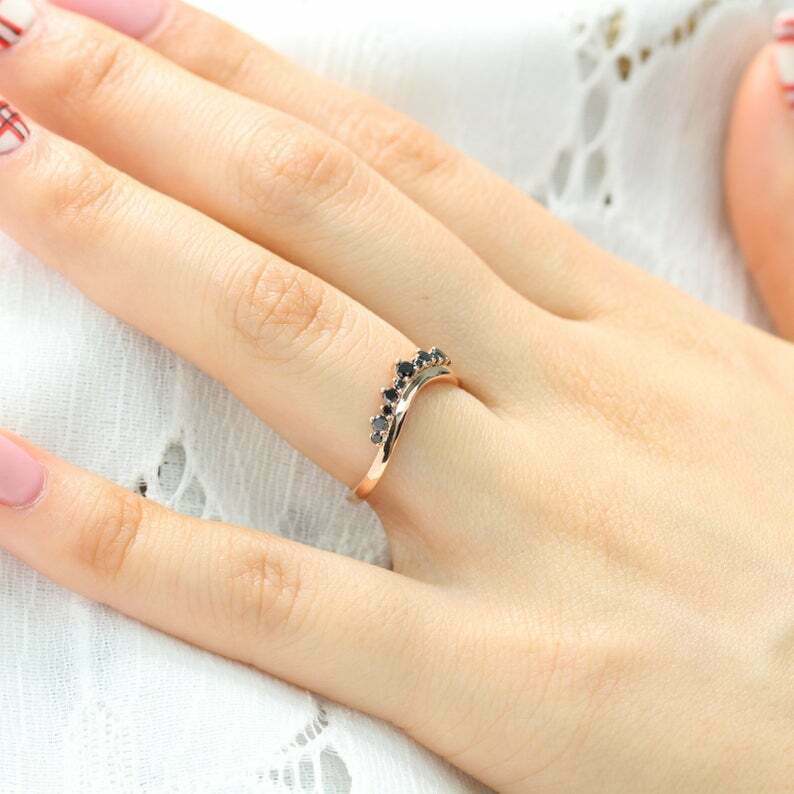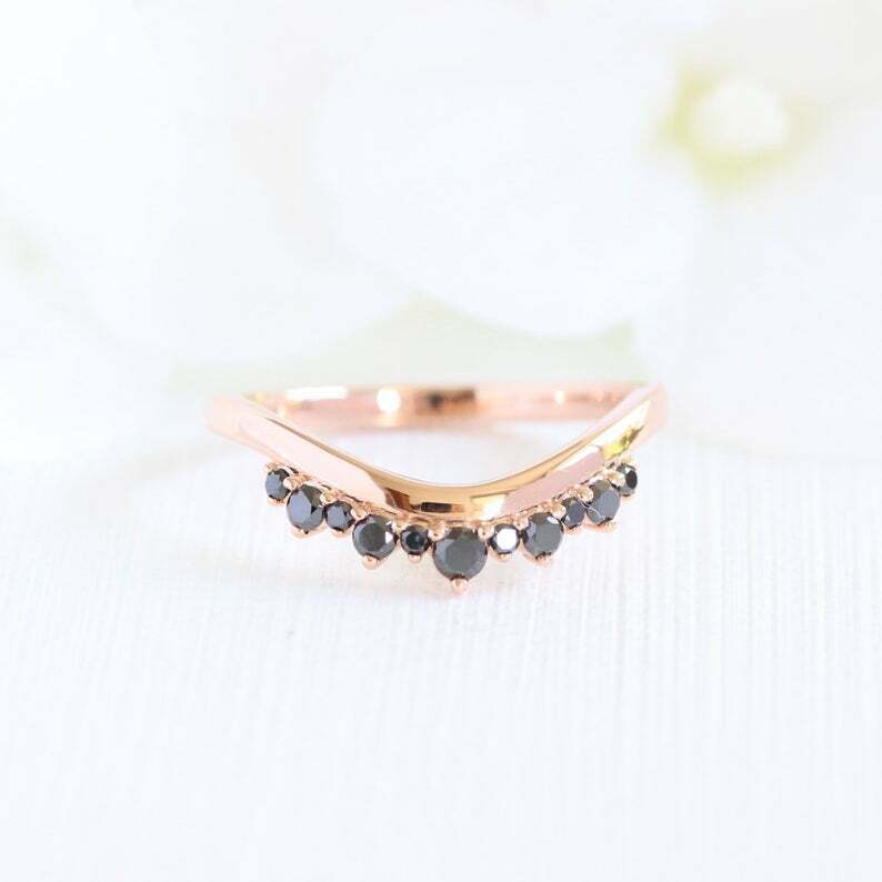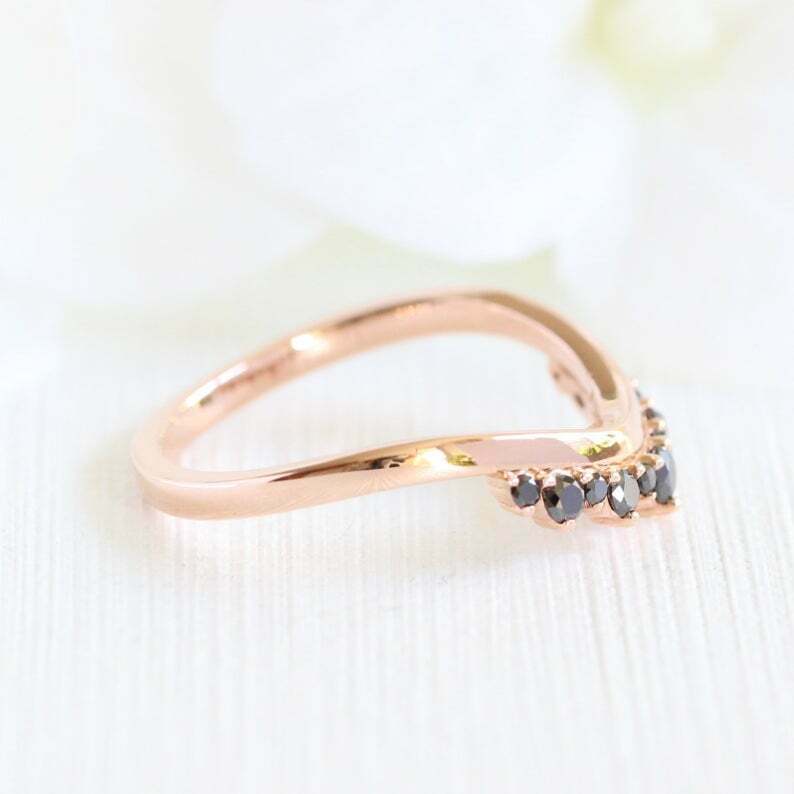 0.8ct Round Cut Black Diamond Wedding Band Curved Crown 14k Rose Gold Finish