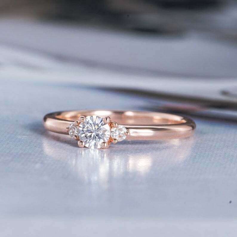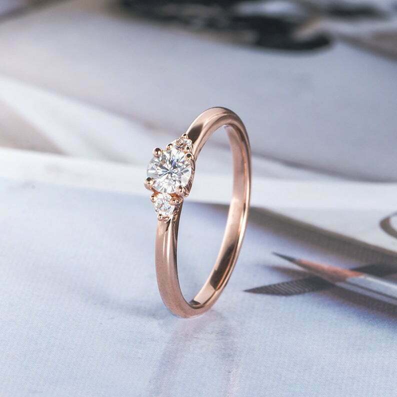 0.8ct Round Cut Diamond Engagement Ring Trilogy Solitaire 14k Rose Gold Finish