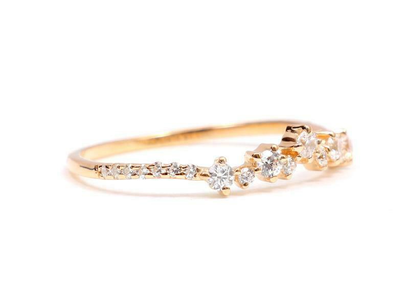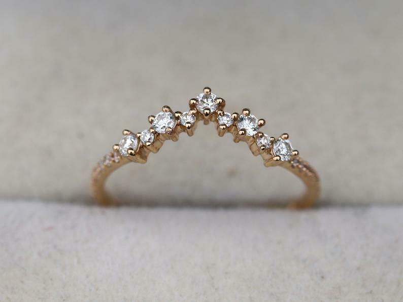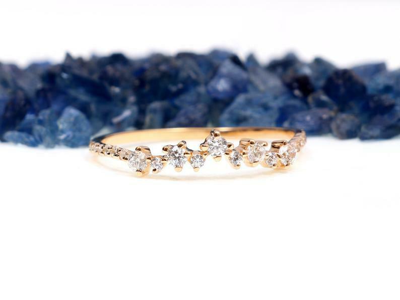 0.8ct Wedding Ring Band Round Cut Diamond Curved Stackable 14k Yellow Gold Finish