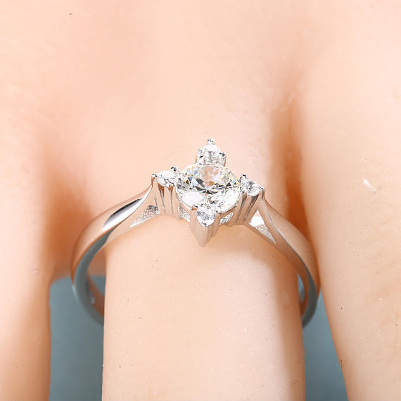 0.9ct Round Cut Diamond Engagement Ring 14k White Gold Finish Unique Solitaire