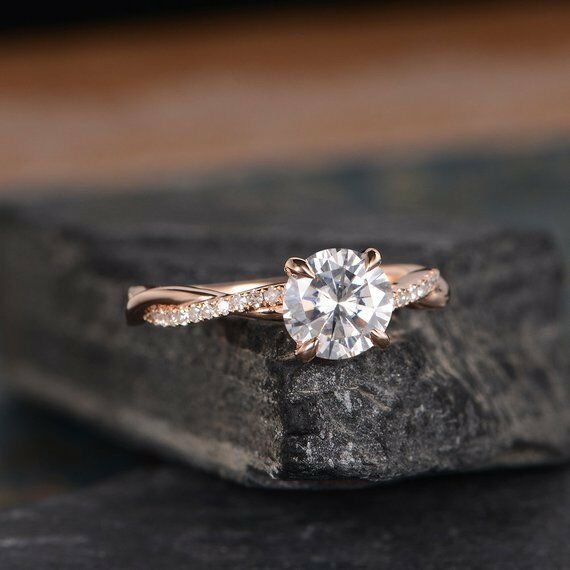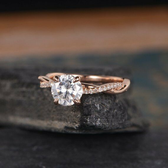 0.9ct Round Cut Diamond Infinity Solitaire Engagement Ring 14k Rose Gold Finish