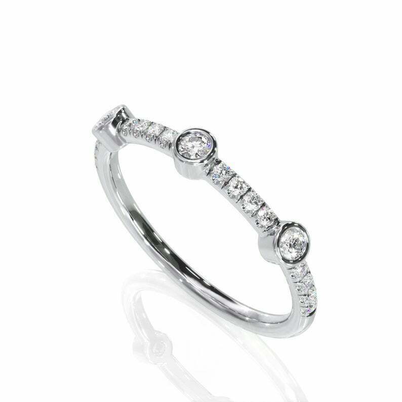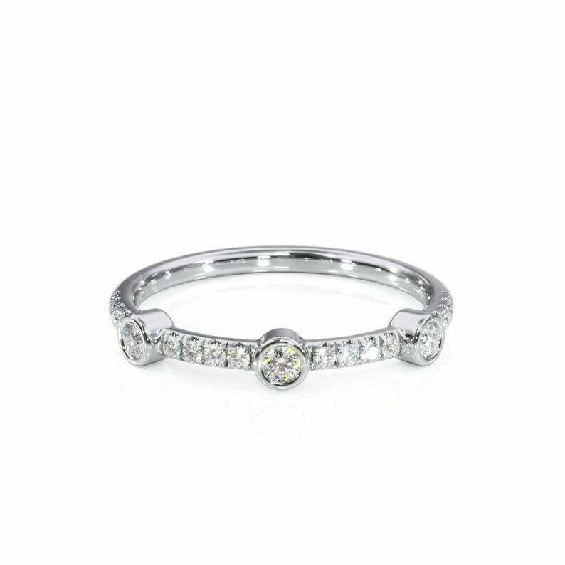 0.9ct Round Cut Diamond Wedding Band Bezel Set Stackable 14k White Gold Finish