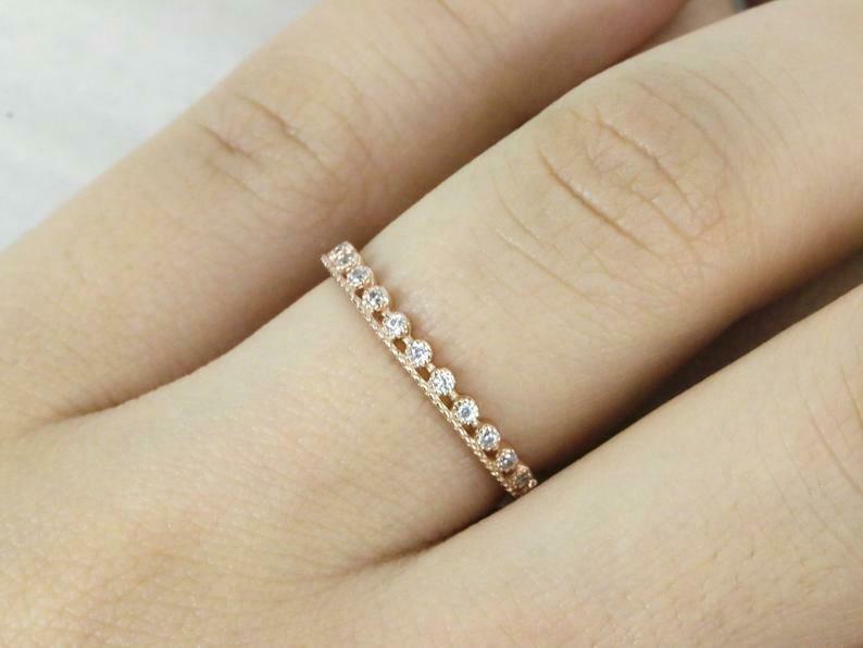 0.9ct Round Cut Diamond Wedding Band Stackable Half Eternity 14k Rose Gold Over